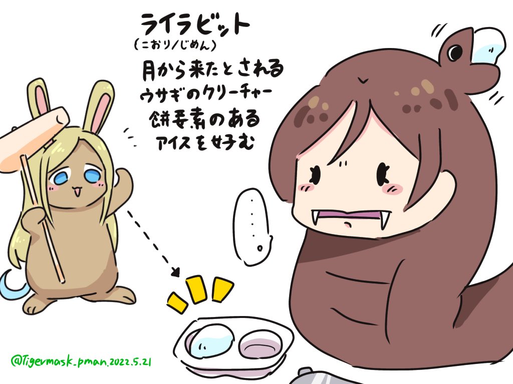 没案で「ライラサンヨウチュウ」と「ライライオン」があったんですけど、どちらも元生き物の姿上、ライラさんのサラサラストレートヘアーを活かせないのでやめました。 #1日分のあかりんご #つじのこ #ライラビット