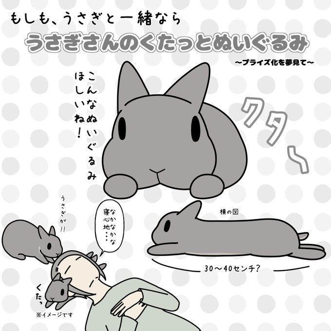【もしも、うさぎと一緒なら】のプライズ化は1つの夢です🐰💕 等身大うさぎさん(30〜40センチくらい?)のぬいぐるみをどうか〜🥺✨ こちらの企画は推薦で決まるらしいのでよろしければラウンドワン様にリプ(いいね&RT)などで推薦をしていただけると嬉しいです🥰 #ラウンドワン限定プライズ twitter.com/ROUND1_AMPRIZE…