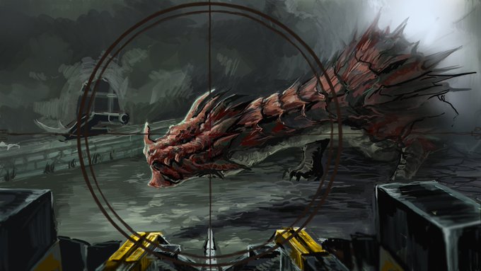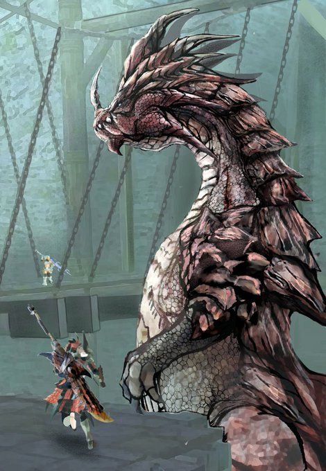 ラオシャンロン完成しました!今回はハンター二人描きました!pixivの方でも載せますので良ければ見ていってください! #MonsterHunter #モンハン #モンスターハンター #イラスト好きな人と繋がりたい #絵描きさんと繋がりたい #ラオシャンロン