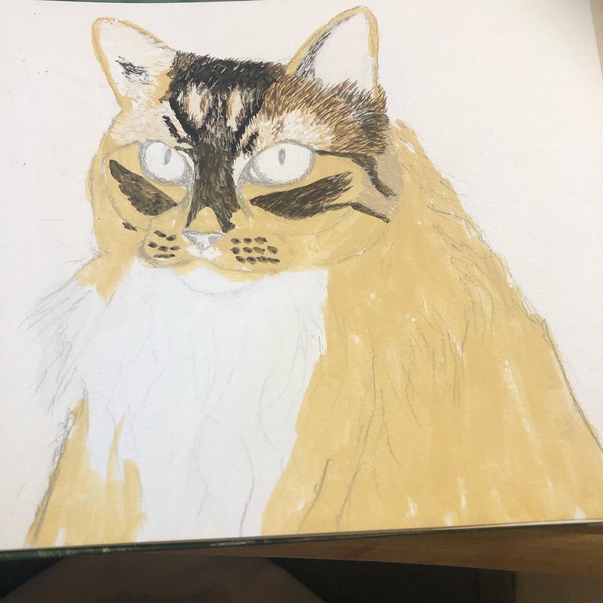 #猫絵 🐈🖼新作です “Cute Ragamuffin” (ケント紙にアクリル絵具、23x18cm) モデルは #ラガマフィン の女の子😻ラフな感じを狙って描きましたが、手数は結構かかってます😅もっと大胆に描けるようになりたい #絵描きさんと繋がりたい #猫好きさんと繋がりたい #アナログ絵 #アクリル画
