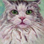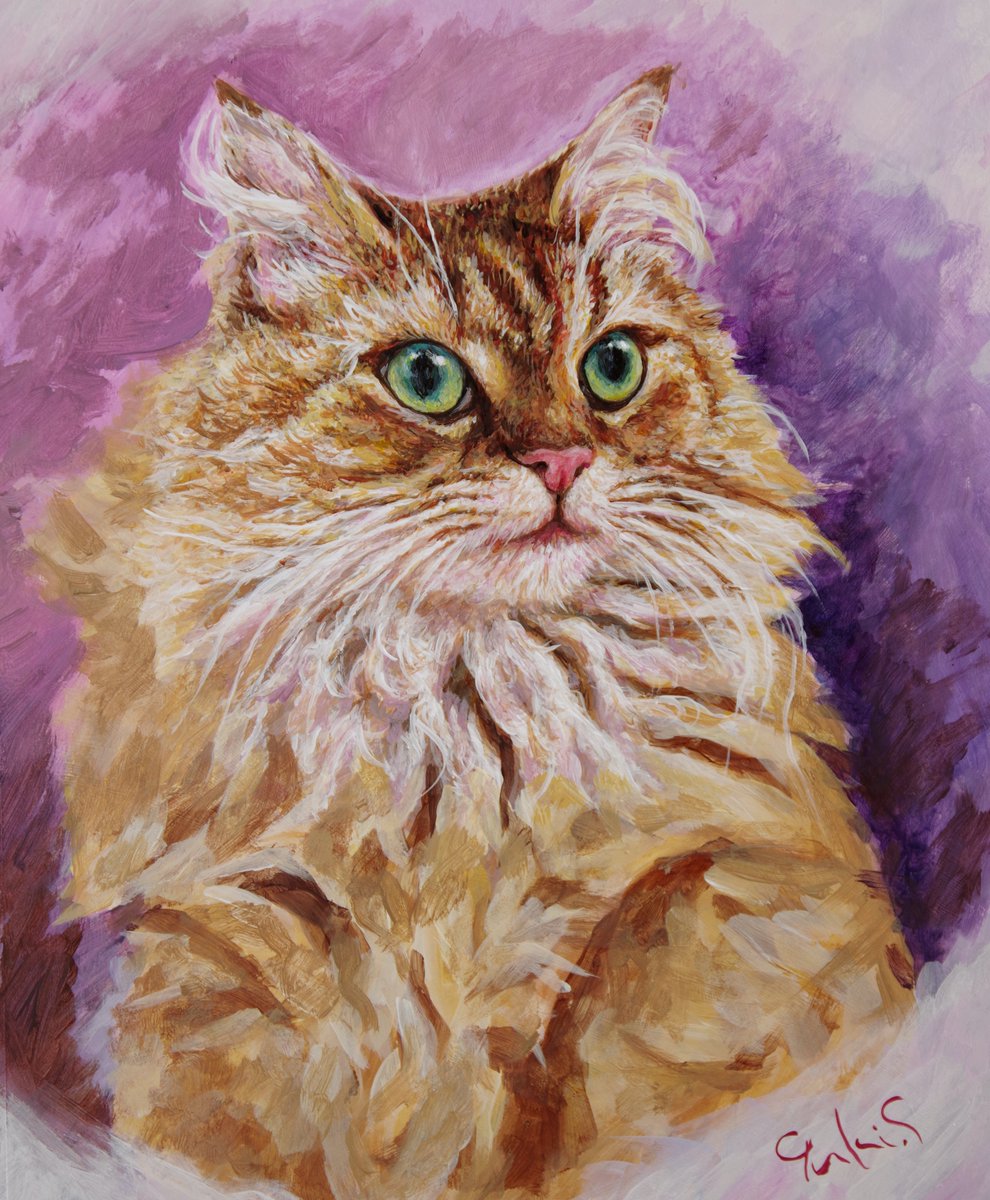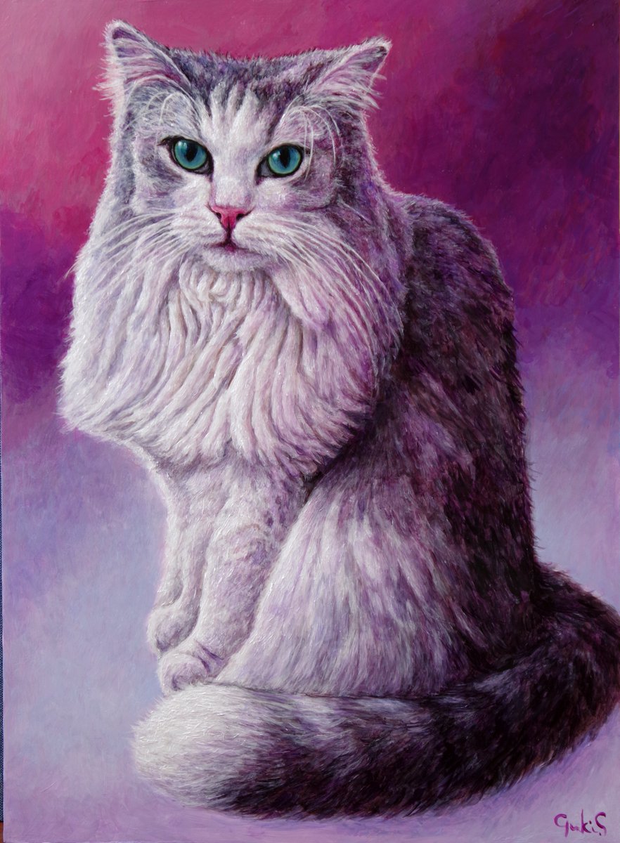 #猫絵 🐈🖼新作です “Portrait of an Elegant Lady” (木製パネルにアクリル絵具、サイズP8) モデルは #ラガマフィン の女の子😻 白銀色に輝くふわふわの長毛がとってもエレガント🤍 #絵描きさんと繋がりたい #猫好きさんと繋がりたい #アナログ絵 #アクリル画