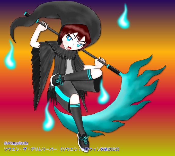 #ラクキンうちのこ #ハロウィンイラスト Discordで先に上げていたハロウィンイラスト、そろそろこちらでも出してみますか! …ということで、うちのオリキャラ、ソウエンに死神っぽい仮装をさせてみました! ラクキンではいろいろな死神のラクガキがいたけど、ソウエンも気持ちだけ死神になれるのだ!