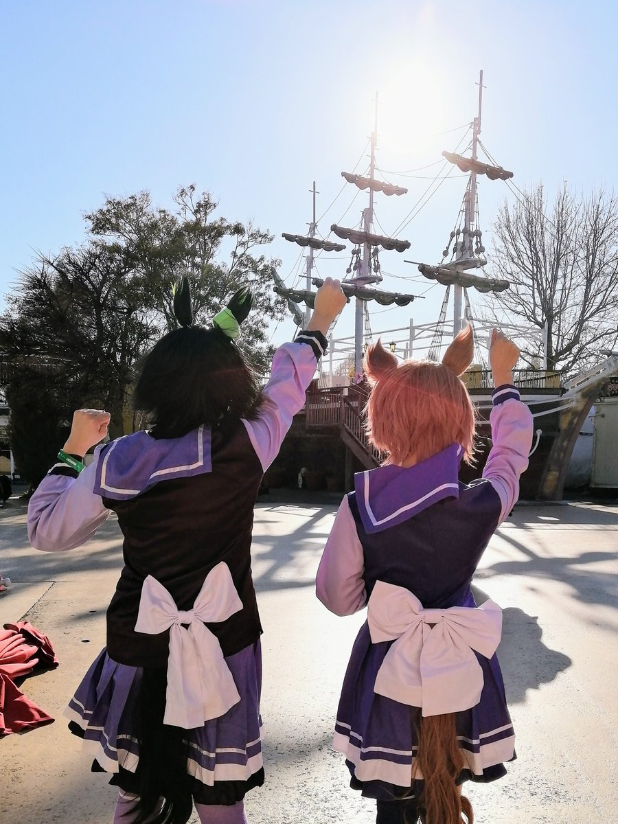 ⚠️コスプレ注意⚠️ ウマ娘プリティーダービー ウイニングチケット(sugarさん:@sugar_cospray ) ナリタタイシン(つーさん:@_tu_cha_ ) 〜声を出せ、叫べ!Wo oh oh トレセーン!ファイオー!〜 #ラクゴス #ラグコスプチ #顔の見えないコス写真