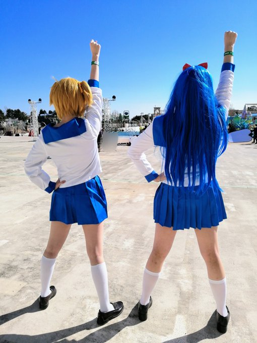 ⚠️コスプレ注意⚠️ ポプテピピック ポプ子(鳩さん:@hatocos ) ピピ美(さちこスさん:@coshajime112 ) 「ヘールシェイク!ヘールシェイク!」 #ラクゴス #ラグコスプチ #顔の見えないコス写真
