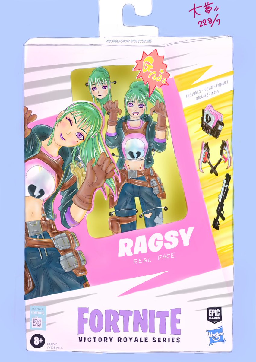 #フィギュア #ビクトリーロイヤルシリーズ #VictoryRoyaleSeries 吹き出し囲いの線と、おさげ部のレイヤー被り修整しました。 #FortniteArt #フォートナイト #フォートナイトイラスト #イラスト #ラグジー #FortniteFanArt #fortnite