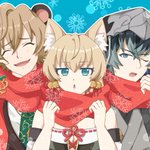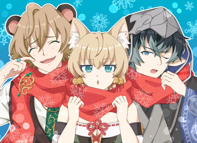 【メリークリスマス🎄🎁】 堺の寒い冬は、みんなでぐるぐるマフラー🎅 「仲良く"くりすます"を過ごそうじゃないか!」 🐱「鉄鼠、なんとかするニャ」 🐭「困った妖主です、まったく…」 皆さん良いクリスマスを〜🫶 #ラグナド #ラグナドイラスト #ラグナドファンアート