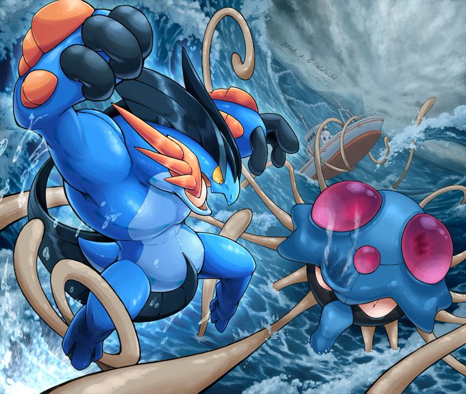 It's 6. February in Germany, which means #SwampertDay! My first drawing since #MudkipDay last year, feat. Ivy (my beloved) from #Amphibia #ラグラージの日 #amphibiafanart