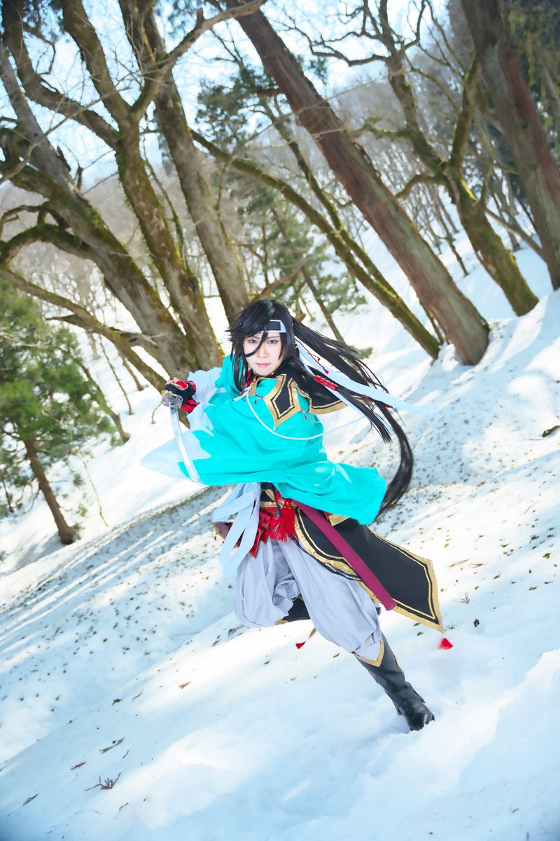 [cosplay/刀剣乱舞] ❄江雪左文字❄ ________________ 冬の行軍 ―――――――――――――――― 📷:日比谷ガウルさん #比企谷厩舎真戦績 #ラコロール余呉の集落 #ラコロール ※カメラマン様タグ付けはリプにて!
