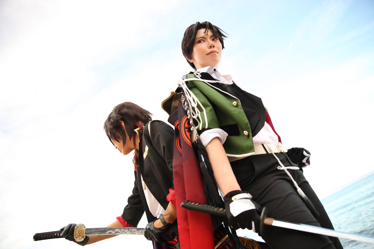 【Cos/刀剣乱舞】 昨日は現地でもーりーさんに会えました💕 ミカサ似合ってて可愛かった🥰 ほんと遠出してよかったと思えるくらい海綺麗だし楽しかった✨ 走り回る刀剣男士ものせとこwww #ラコロール洲本撮影会