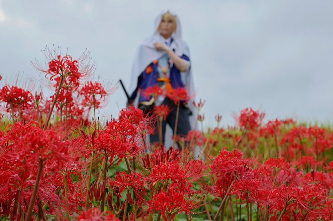 ⚠️cosplay⚠️ 彼岸花の中に埋もれ立つ感じがたまらない…!群生しつつもたまにある隙間を埋める手腕たるや(*´∀`*) 私もお返しできるように腕を上げるぞー!💪✨ Photos: 狭霧さん @sagiri_228 #ラコロール #ラコロール穂谷里山ロケ