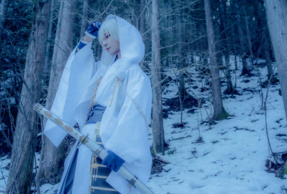 【cosplay】※流血表現※ 刀剣乱舞/三日月宗近 _______仕事中だ。失せろ。 Camera @hirotsugutanida #ラコロール #ラコロール余呉の集落 #ラコロール雪ロケ