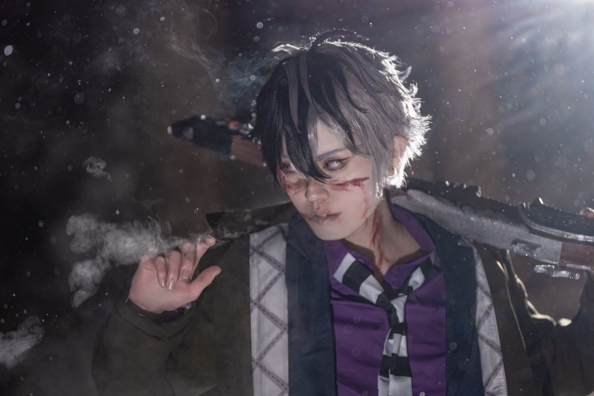 【コスプレ】 刀剣乱舞/桑名江 ⚠️血糊あり⚠️ ⚠️目見えてる⚠️ **** 斬られたいやつは かかっておいでよ **** ゴーグルくもっちゃって目が見えにくいけど見えてる 📷毘帥さん【@hisui___w】 #ラコロール余呉集落 #ラコロール雪ロケ