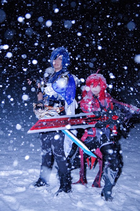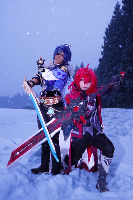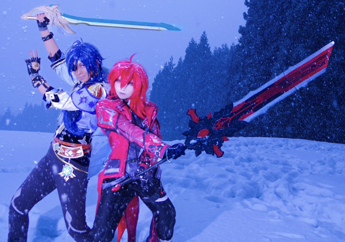 【コスプレ】 刀剣乱舞/器物破損コンビ ***** ─偵察─ ***** へし切長谷部…はりむ 【@harihari_harimu】 燭台切光忠…舞姫神楽 📷比企谷ガウル 【@siga501hu4223】 #比企谷厩舎真戦績 #ラコロール雪ロケ #ラコロール余呉の集落