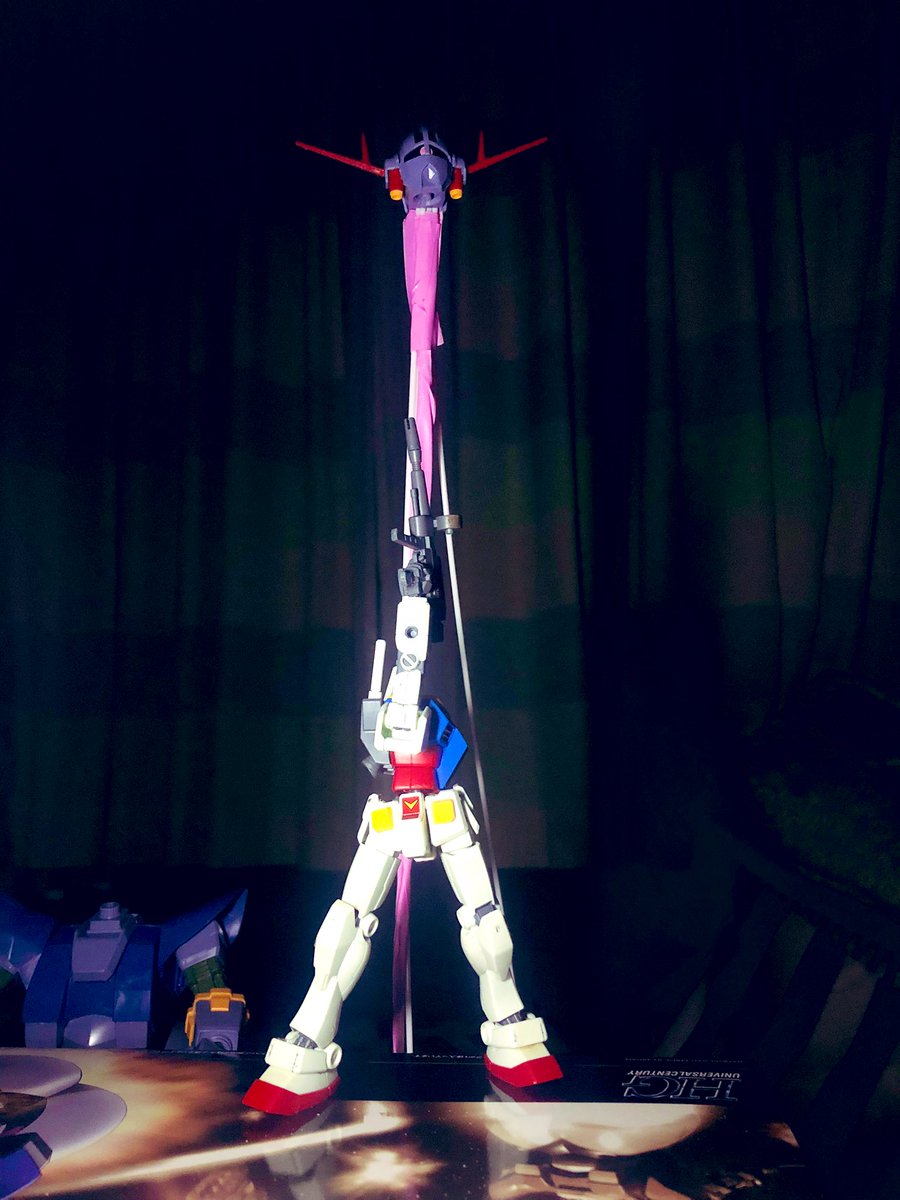 ワイのガンプラ… やっとパチ組まで終わった……? (背中まだだけど) さて、ここで問題発生!? 天井まで残り数cm… 腕を真っ直ぐにしようかな? 天井殴るケド… ダンボリアンのためしばらく放置 #廃材クラフター #ガンプラは自由だ #ラストシューティング