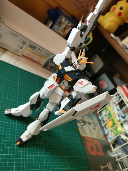 小3の息子が昨日作っていたνガンダムが、今朝起きたらラストシューティングのポージングしていてチョット笑ってしまった😁 偶然だが・・・わかってやがる! #νガンダム #ラストシューティング #ガンプラの画像貼るとRTされると聞いて