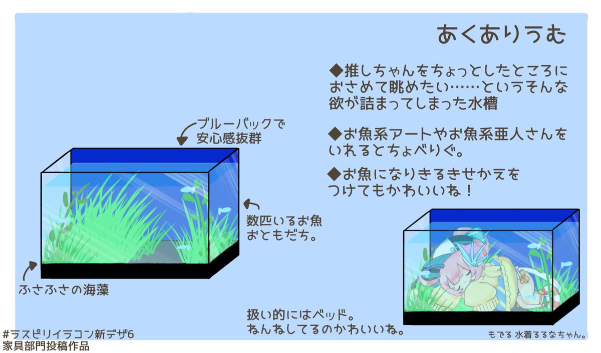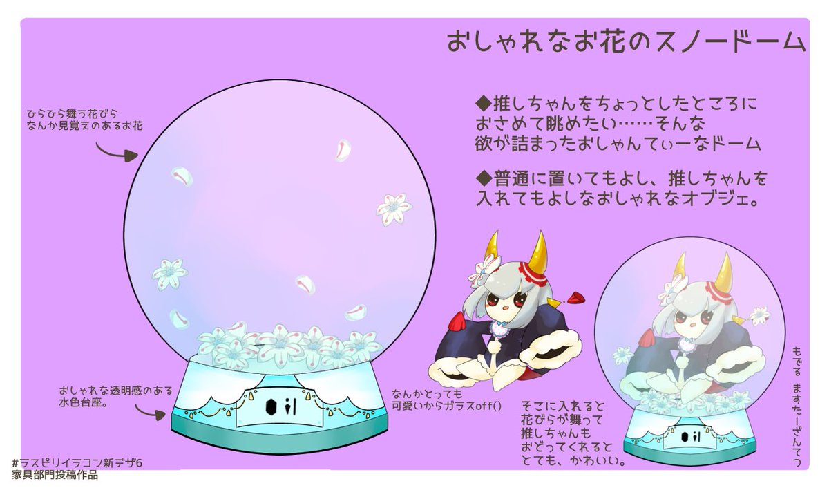 #ラスピリイラコン新デザ6 6周年おめでとうございます🎉 家具部門に応募させていただきます。 特になんの統一感もない単体家具3つです。推しちゃんを、ちょっとしたところに入れて眺めたい故にこんな事になりました。よろしくお願いします