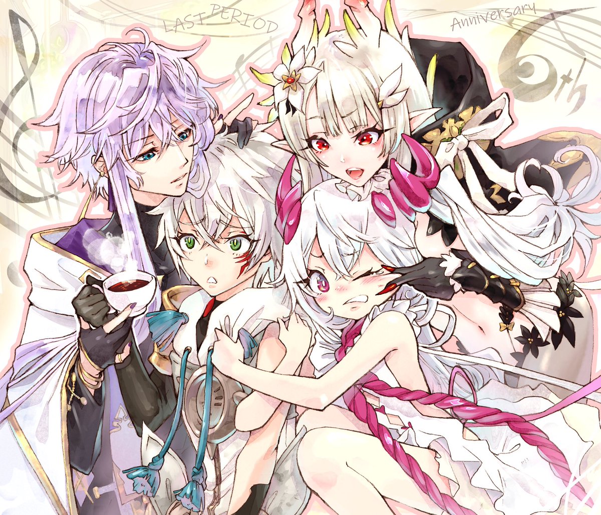 #ラスピリイラコンFA6 ラストピリオド6周年おめでとうございます かつて同じ場所で同じ国の民の平穏を願ったこの5人が大好きです たとえ進む道が分かれても、彼ら彼女らに幸福がありますように アルタイル様ーーーーーーー!!!!!!! 愛してるぞーーーーーーーーーーーーーーー!!!!!!!!!