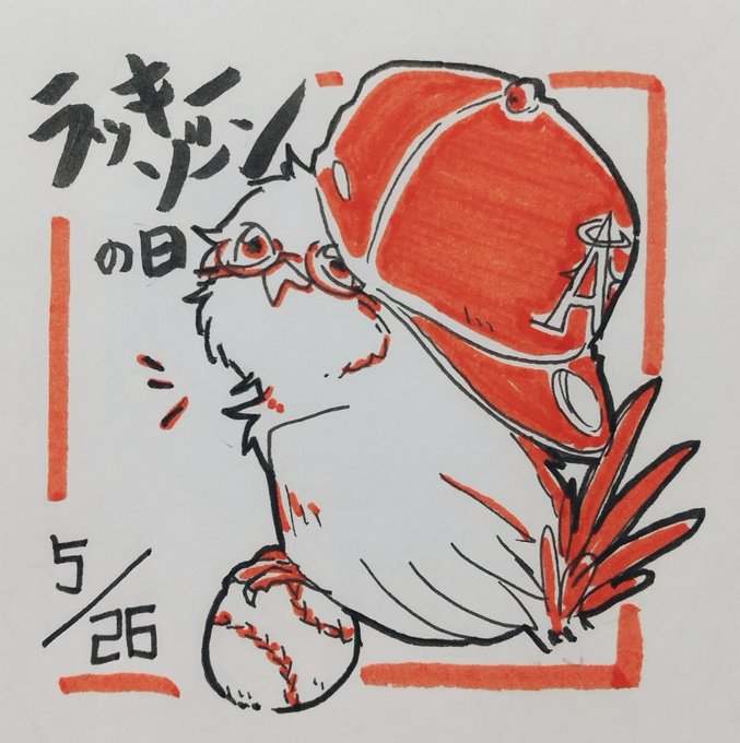 5月26日はラッキーゾーンの日⚾ 野球よく分からないけど、大谷選手が大活躍しているエンゼルスは分かるので帽子をエンゼルスにしました笑💦 #今日は何の日 #イラスト好きな人と繋がりたい #お絵描き #鳥 #一日一絵 #ペン画 #5月26日 #ラッキーゾーンの日