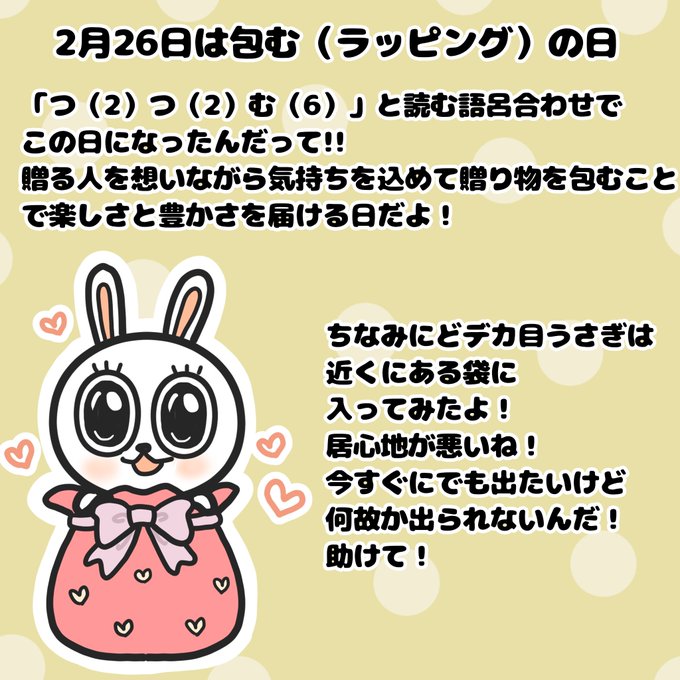 おはようございます✨ どデカ目うさぎがラッピングされてるね😄誰かもらってくれるかな✨ #イラスト #どデカ目うさぎ #イラスト好きさんと繋がりたい #illustration #みんなで楽しむTwitter展覧会 #ラッピングの日