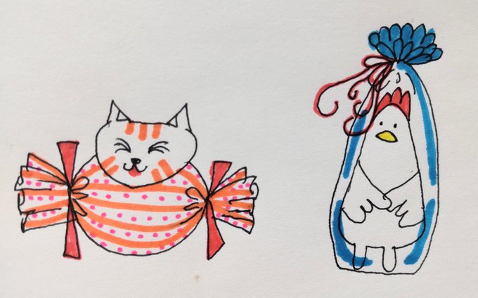 おはようございます!! (#ラッピングの日) ことら、キャンディー型!! ニワちゃん、息できてる??🤣 今日も素敵な土曜日を〜😆 #イラスト好きな人と繋がりたい #絵描きさんと繫がりたい #みんなで楽しむTwitter展覧会 #イラスト