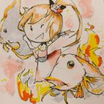 ラナンちゃお誕生絵!ヽ(´▽`)/🔥 おめでとう!(〃゚∀゚)ノ□☆□ヽ(゚∀゚*) お伴の魚は ファイヤーバードフィッシュ🔥 (アカククリ幼魚) 火魚🔥(カナガシラ)です 一度やってみたかった属性お魚 どー見ても魚の方に力点が(*ノω・*)テヘ #ラナン生誕祭 #ゴ魔乙ファンアート