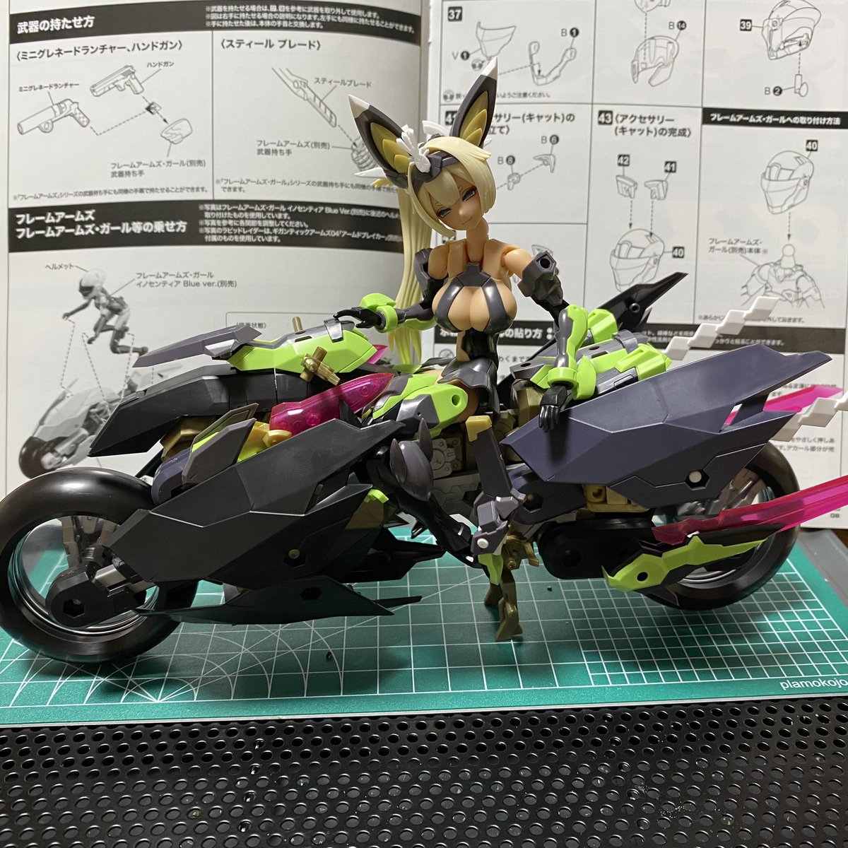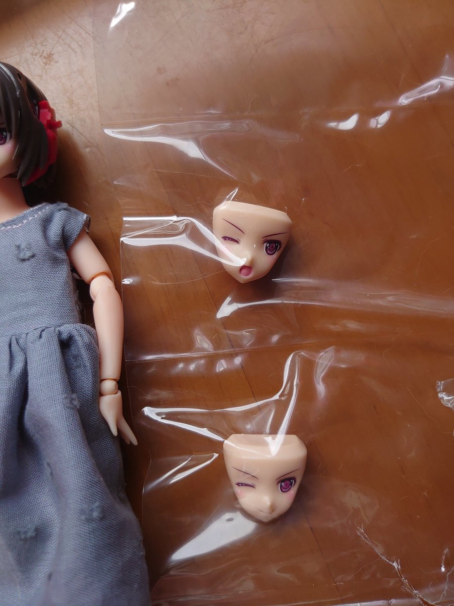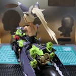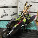 ラピッドレイダーちゃん どーーしても、ニヤッ顔が( ´~`)だったので、元々付いていたフェイスの目を落として、付属のデカールに交換 うん! 好みのお顔になりました! #ラピッドレイダー #メガミデバイス #フレームアームズ・ガール