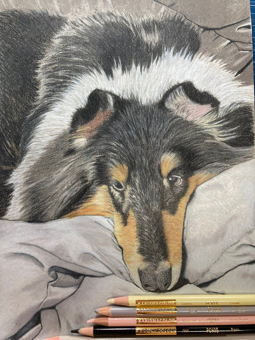 とっても小さくコリー描いてみた 描いてる動画↓↓↓ youtu.be/FCe82ev_T5M #コリー #ボーダーコリー #ラフコリー #Collie #描いてみた #アナログイラスト #ファンアート #絵描き #模写 #絵描きさんと繋がりたい #イラスト #onecoinart