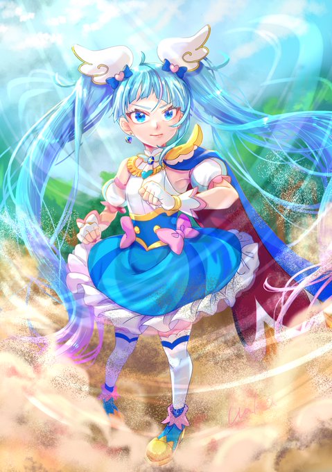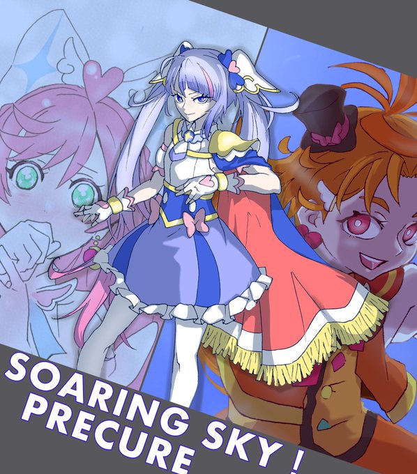 #ラフ共有でイラスト投稿 大遅刻ですが参加させてください!! も毛さんのラフからイラスト描かせていただきました(*´꒳`*) キュアスカイ初描き!楽しかった✨ twitter.com/mokemoke0623/s…
