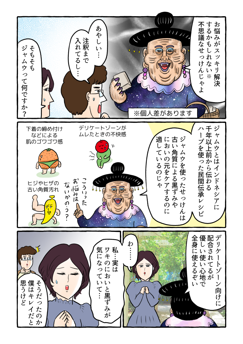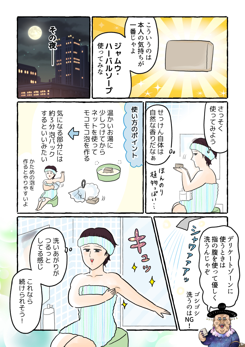 気になる部位が優しく洗えてお悩みスッキリ✨ ジャムウ・ハーバルソープってどんな感じ?という漫画を描きました! 150円OFFクーポンコード【yama150】 (期限2月14日まで) lovecos.me/ZWAf #ラブコスメ #sponsored