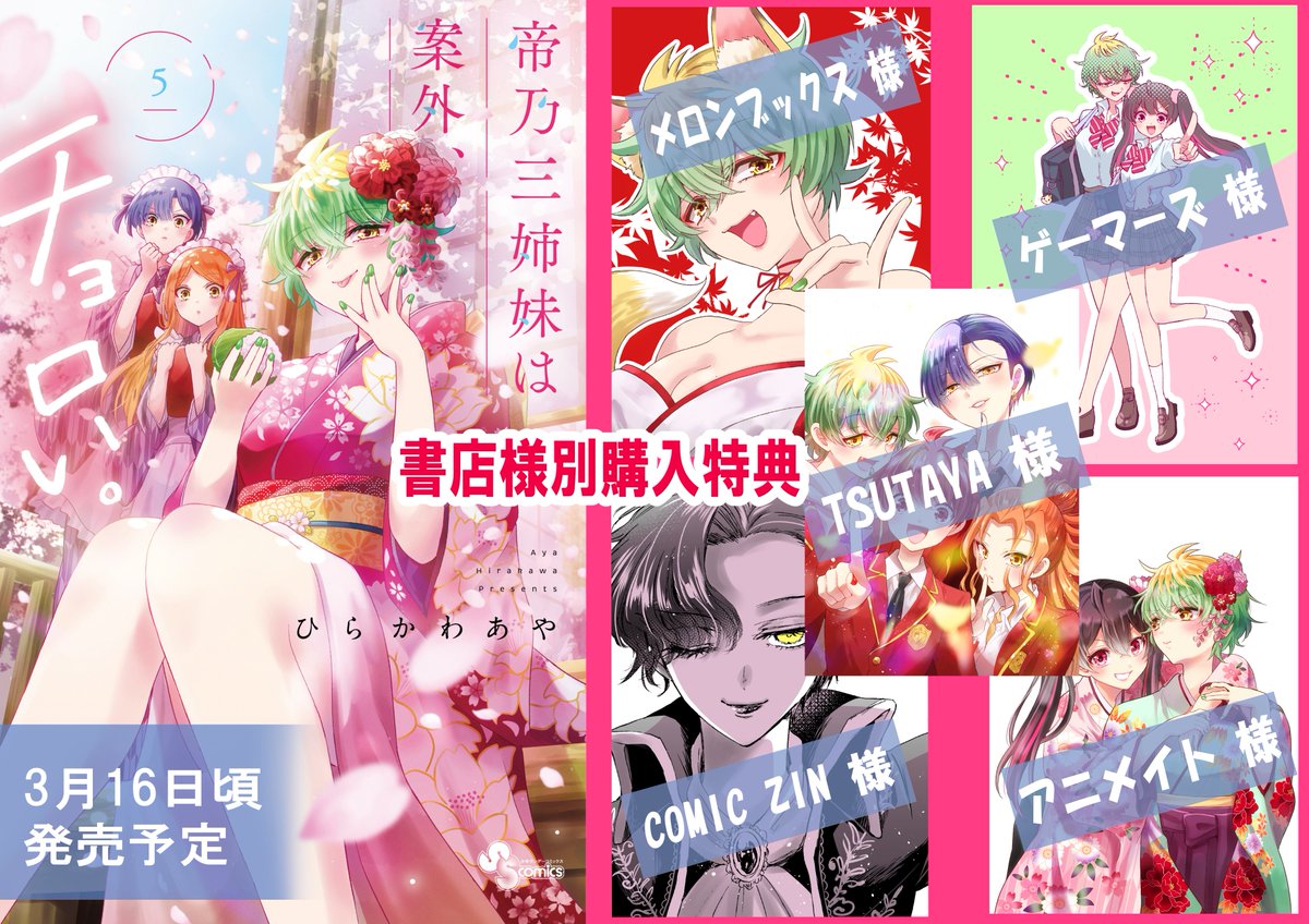 天才三姉妹とポンコツ男子の同居ラブコメ『帝乃三姉妹は案外、チョロい。』🏡💗 単行本第5巻は、来週3/16(木)頃発売予定です! 書店様別のイラスト特典は、無くなり次第配布が終了しますので、お早めにお手にとって頂けたら幸いです😌 #ラブコメ #帝乃三姉妹は案外チョロい