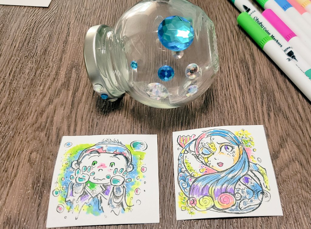 何とか間に合いました!瓶の中に《少年》と《人魚》を反対にいれて、《出会えぬラブストーリー》を作りました。#ラブストーリー #lovestoryinabottle #アナログイラスト #drawingoftheday #paintingoftheday twitter.com/atelier_guild/…