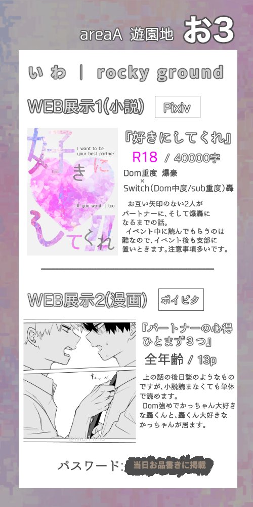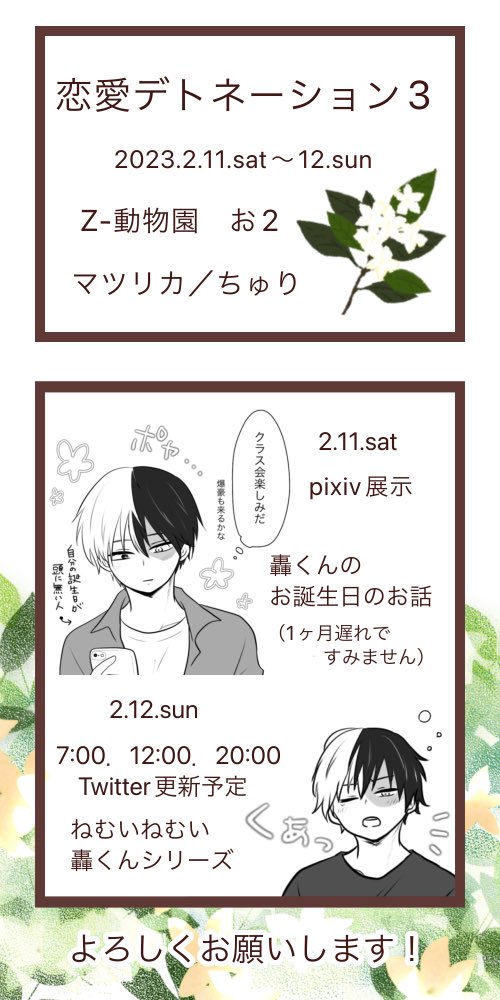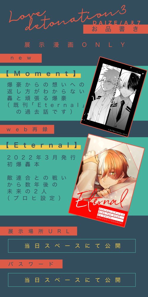 ラブデト3のお品書きです! 当日は漫画を2作品展示する予定です スペース:A遊園地/え7 サークル名:DAIZE 初webオンリーサークル参加、楽しみです〜! #恋愛デトネーション3 #ラブデト3 twitter.com/komada_bktd/st…