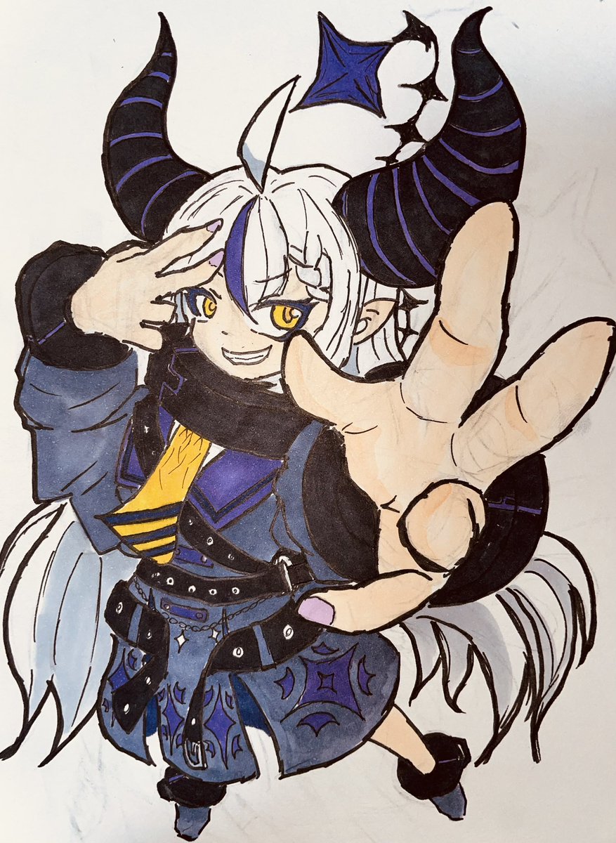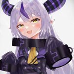 1周年おめでとうございます( ˙༥˙ ) 少し背伸びをしてスーツを着用するもサイズが合ってない総帥を描きました!これからも配信楽しみにしています( ˙༥˙ ) #ラプラス総帥1周年 #laplus_artdesu #ホロライブ #hololive