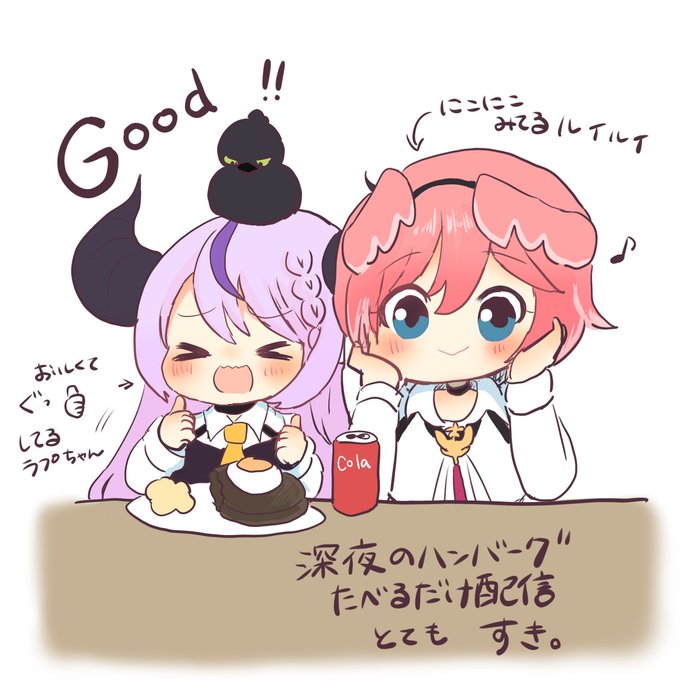 【ルイ姉の特製ハンバーグを夢中に食べるラプラス】 ▼フル▼ youtu.be/jG6F7W2nUsQ #laplus_artdesu #Luillust #ラプルイ #holoX #手描き #ホロライブ切り抜き #hololive