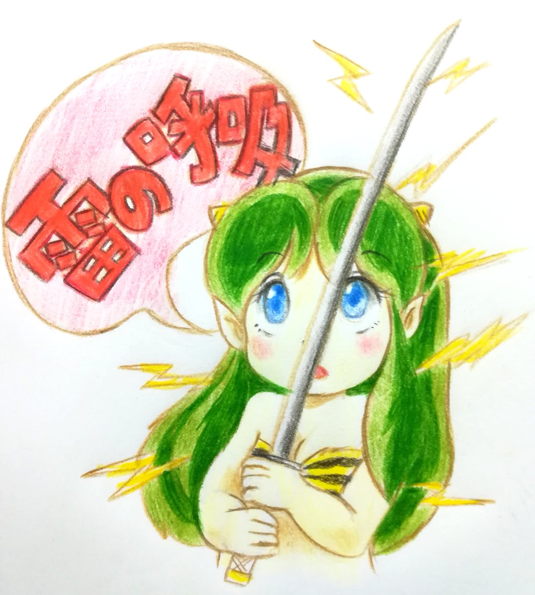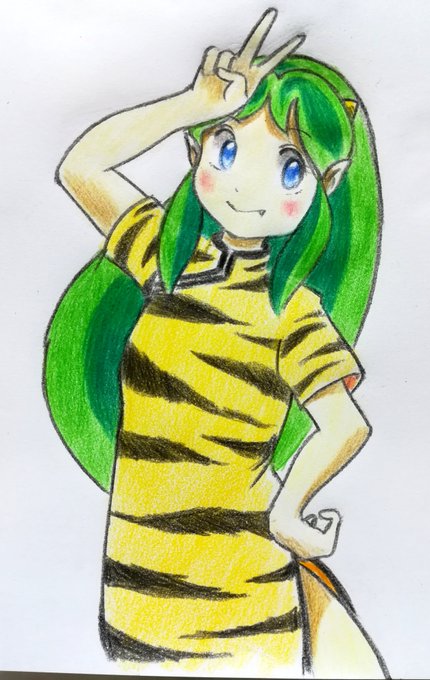 うる星やつらのラムを色鉛筆で描いてみました。ちょっと、鬼滅入り。 #イラスト #絵描きさんと繋がりたい #イラスト好きさんと繋がりたい #うる星やつら #色鉛筆画 #ラムちゃん #ラムちゃんコスプレ