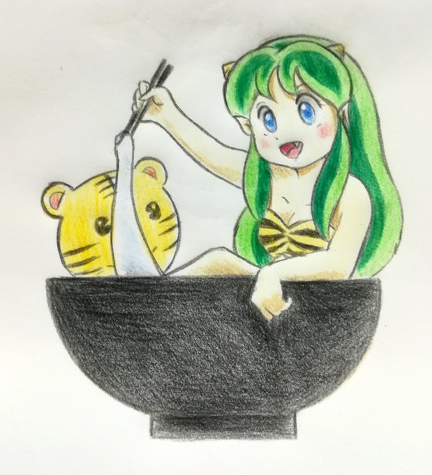 うる星やつらのラムを色鉛筆で描いてみました。【あけおめ雑煮】バージョンです。 @artzukinano #イラスト #絵描きさんと繋がりたい #イラスト好きさんと繋がりたい #うる星やつら #色鉛筆画 #ラムちゃん #ラムちゃんコスプレ #ブログ初心者と繋がりたい #ブログ