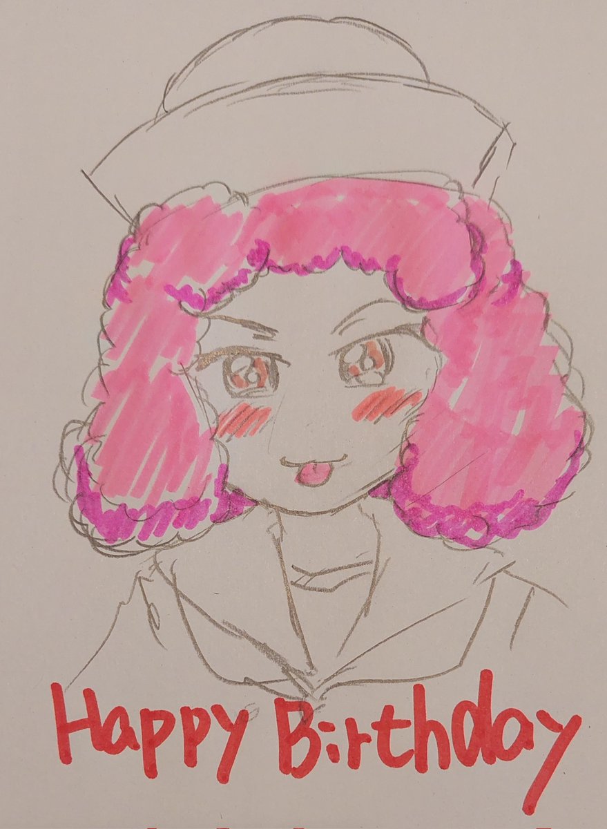 ラム♥️HAPPY♥️BIRTHDAY♥️ お誕生日おめでとう🎁🎂🎉 夜勤明け、5分以内でさらっと描きました。 ガルパン四コマ漫画を描いてますが、ラムとお銀だけは、まだ描いてません。ラムを描こうとすると、うる星やつらのラムちゃんを描きたくなってしまう。 #ラム生誕祭2023 #ラム生誕祭