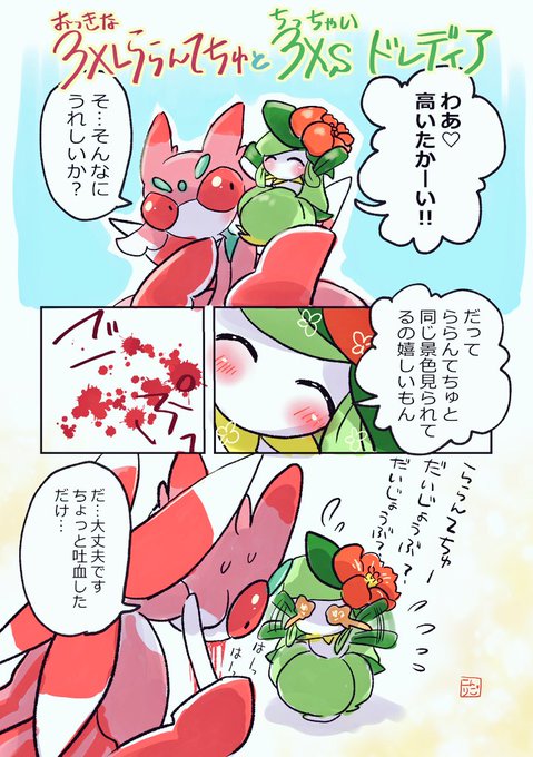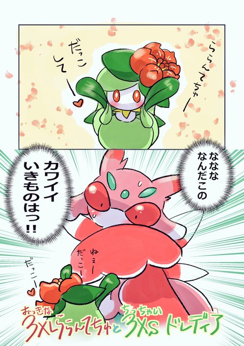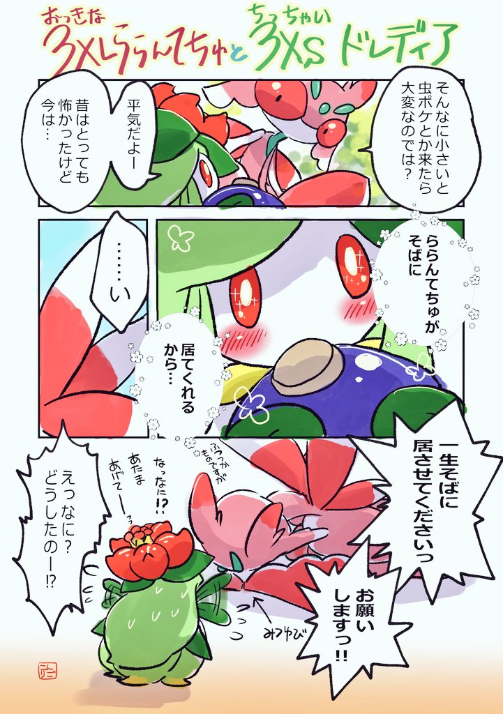 🌺超でっかいラランテスと超ちっちゃいドレデイアのお話🌷①〜③(3枚完結) #ララドレの日 #3XLららんてちゅと3XSドレデイア #3XLLurantisand3XSLilligant ※単体でアップしたものの再掲です