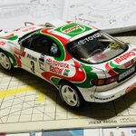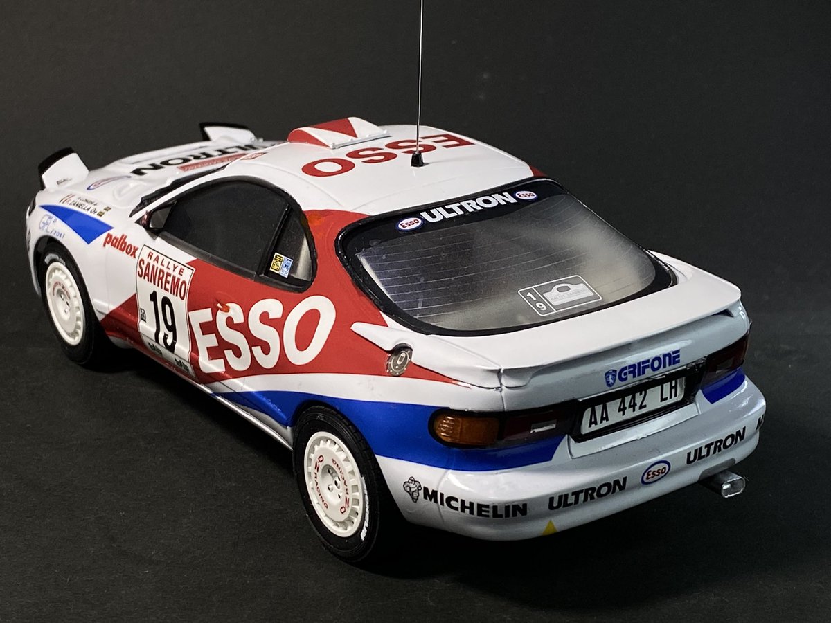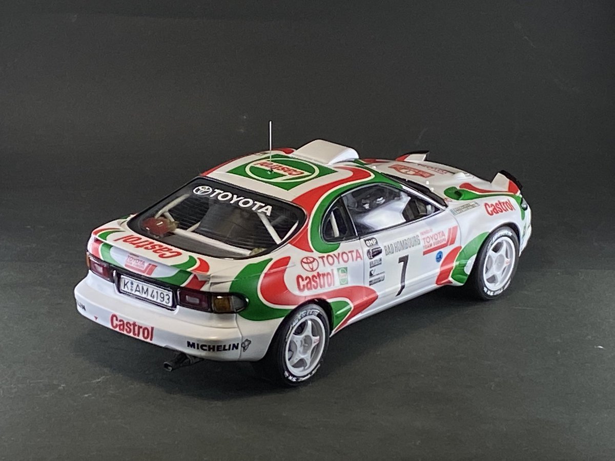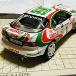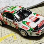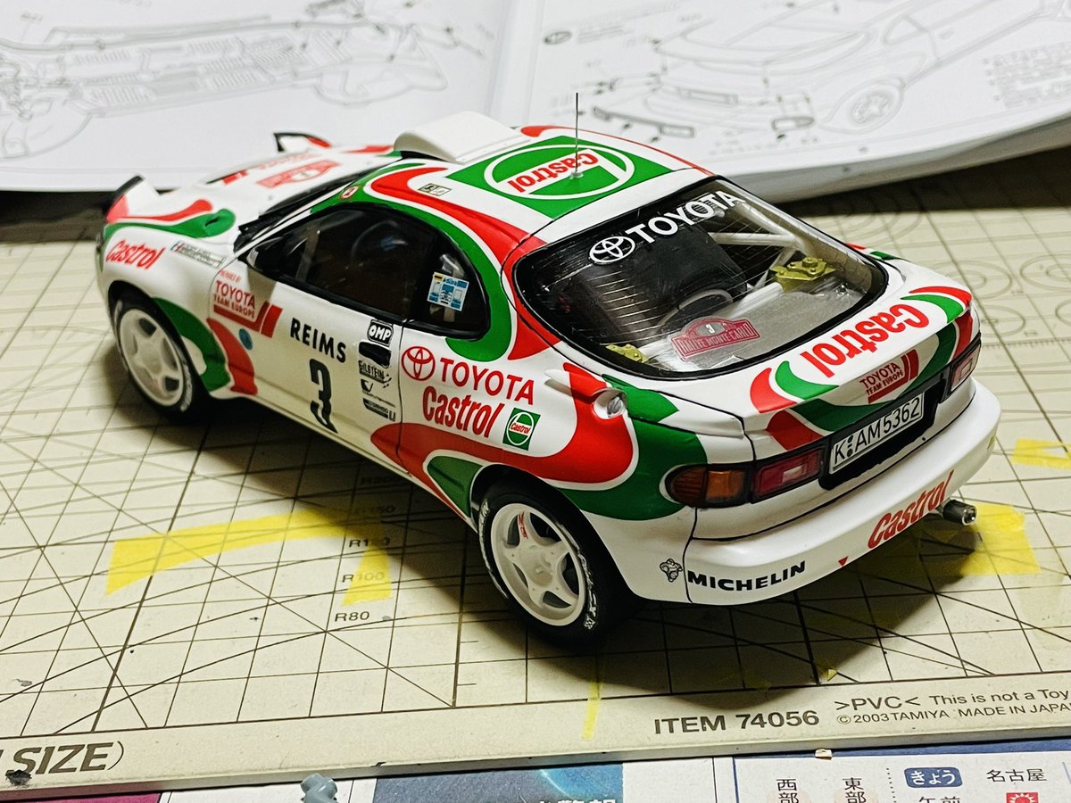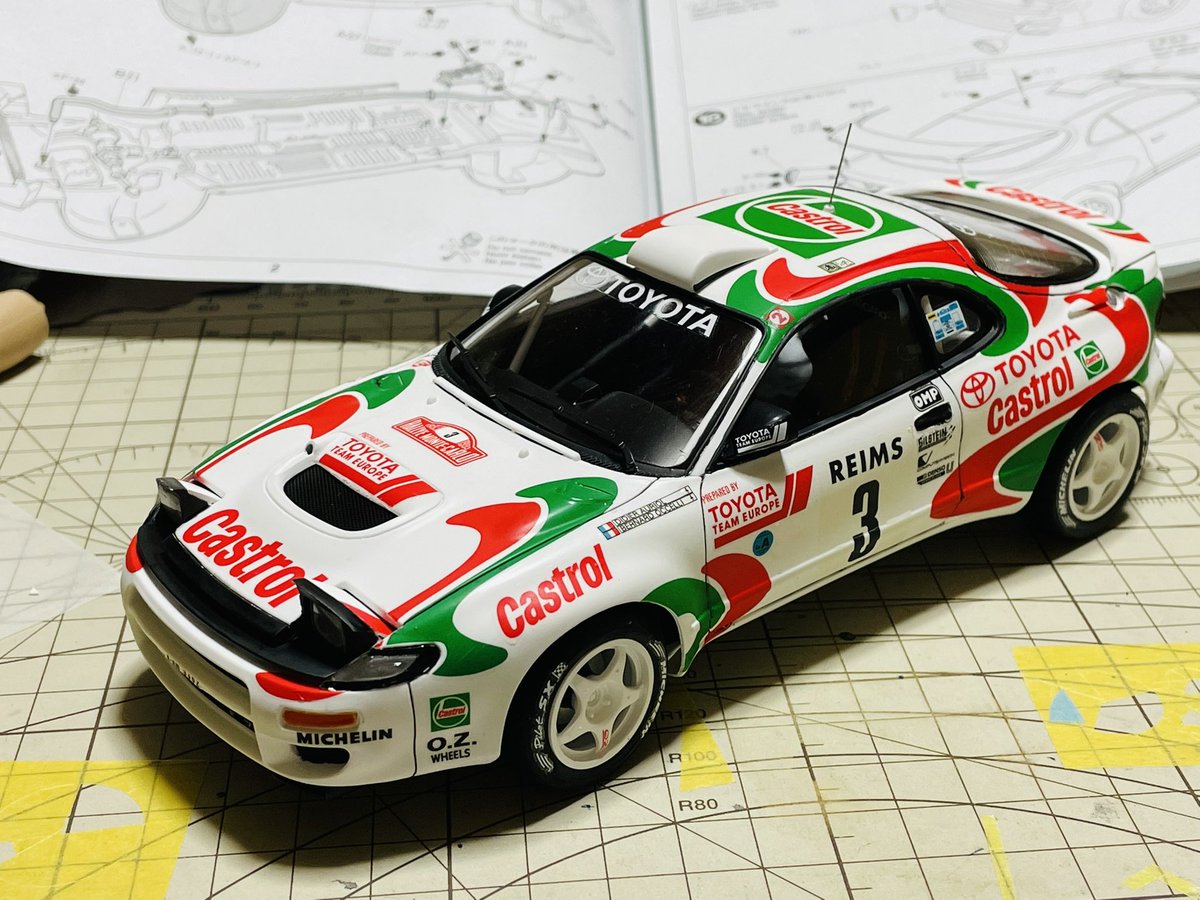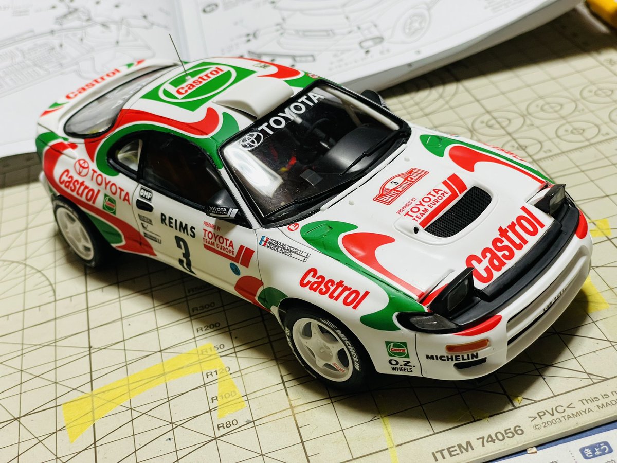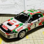 #ラリー祭り タミヤ 1/24 カストロール・セリカ('93モンテカルロラリー優勝車) あちこちでクラッシュしましたが何とかゴールしました マスキングできなくなるからデカール前に窓枠を塗るなどもっと先読みしてボディー製作の手順を考えた方がよかったですね #セーブザマナティー