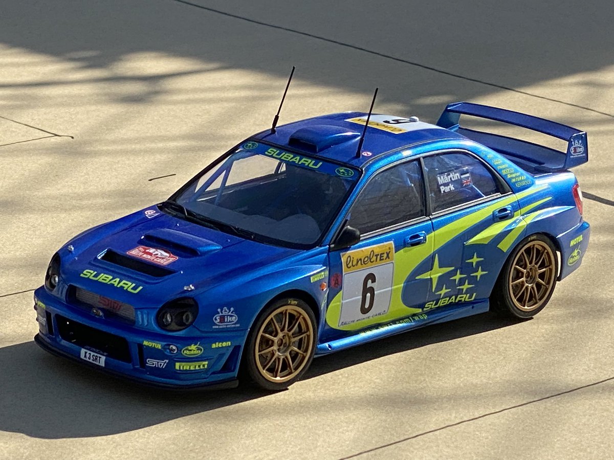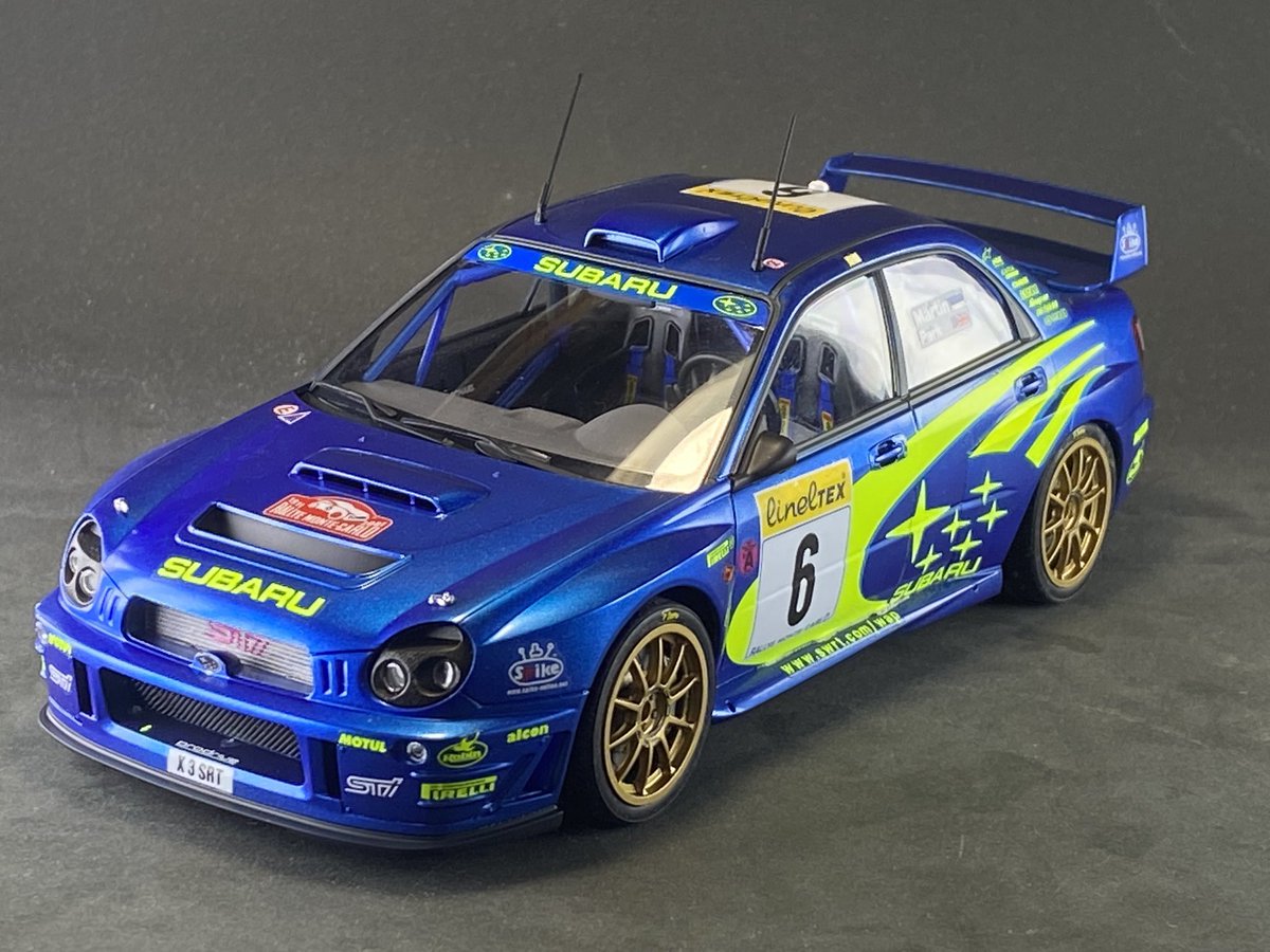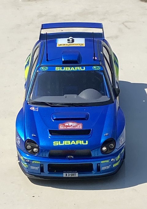 タミヤ 1/24 インプレッサWRC2001 完成しました! ボディは黒下地にクレオスメタルブルー→タミヤマイカブルー→半艶クリア ホイールは未塗装でキットのままです。 #ラリー祭り #インプレッサ祭り #セーブザマナティー