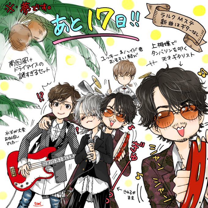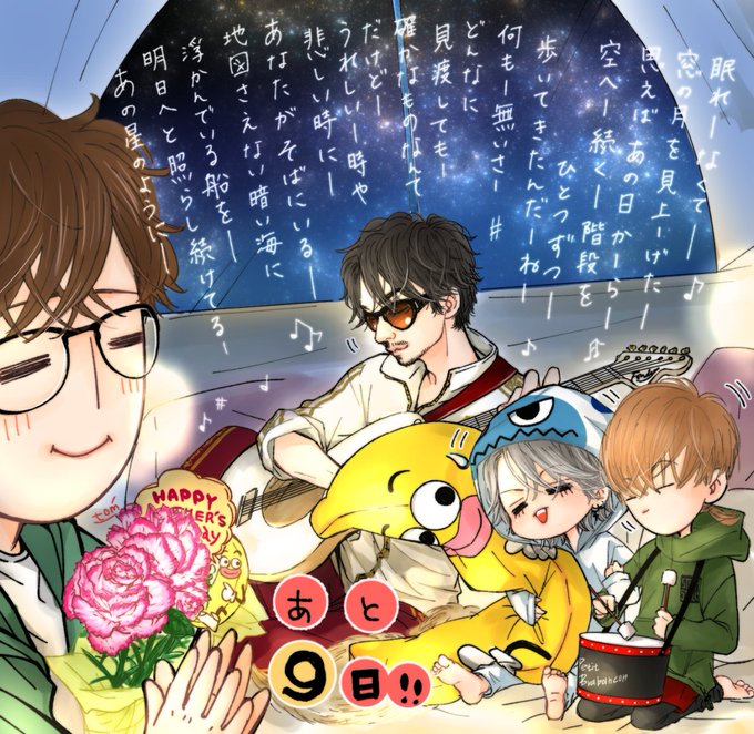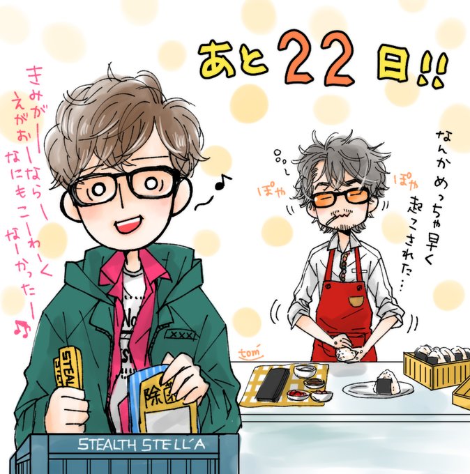 🌈おはよはよはよ~🍌 パッパと同じく7時前に起きてこれ描き出したとむこさんです…(実はけっこう朝に描いてる) ラルク家もGWのようです。 私と同じく仕事の方はがんばろね… ドームまであと22日!! #ラルク家カウントダウン #なにかのご用意するご両親