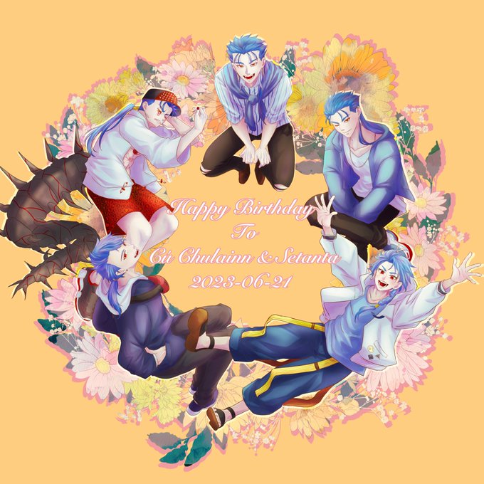 兄貴達とセタンタ、お誕生日おめでとう🎊🎉🎂 これからもよろしくお願いします♪ あと、今年こそ槍ニキの水着がありますように!!! #クーフーリン生誕祭2023 #クーフーリン生誕祭 #ランサー生誕祭