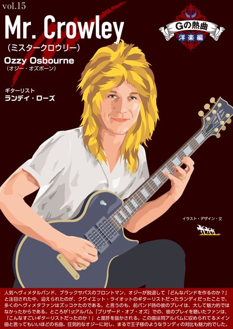 「Gの熱曲」こちらは洋楽編となります😀。ドキュメント映画 #ランディ・ローズ が公開中ということもあり取り上げました。飛行機事故により25歳で他界した悲運のギターリストです。曲は「Mr.Crowley」。 #絵描きさんと繋がりたい