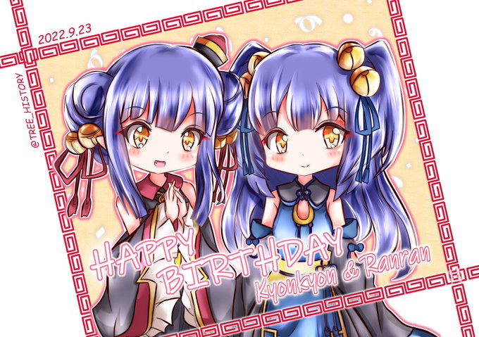 ランランお姉ちゃんとキョンキョンお誕生日おめでとうございます!(過去絵) #ランラン生誕祭 #キョンキョン生誕祭 #ランラン誕生祭 #キョンキョン誕生祭 #キョンシー姉妹生誕祭 #キョンシー姉妹誕生祭 #邪神ちゃんドロップキック