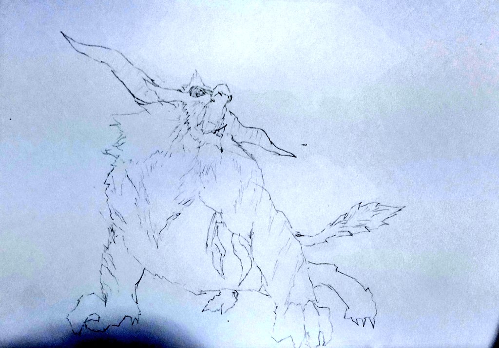 青ちゃんがやらかしてくれたので、彼はハウスです❗️プンスコ 描きかけのスケブの上にやりやがった😭 (なんとか無事ですが) ぁ。このイラストではないです。 ラージャンを描きました‼️ #モンハンワールドアイスボーン #ラージャン #イラスト