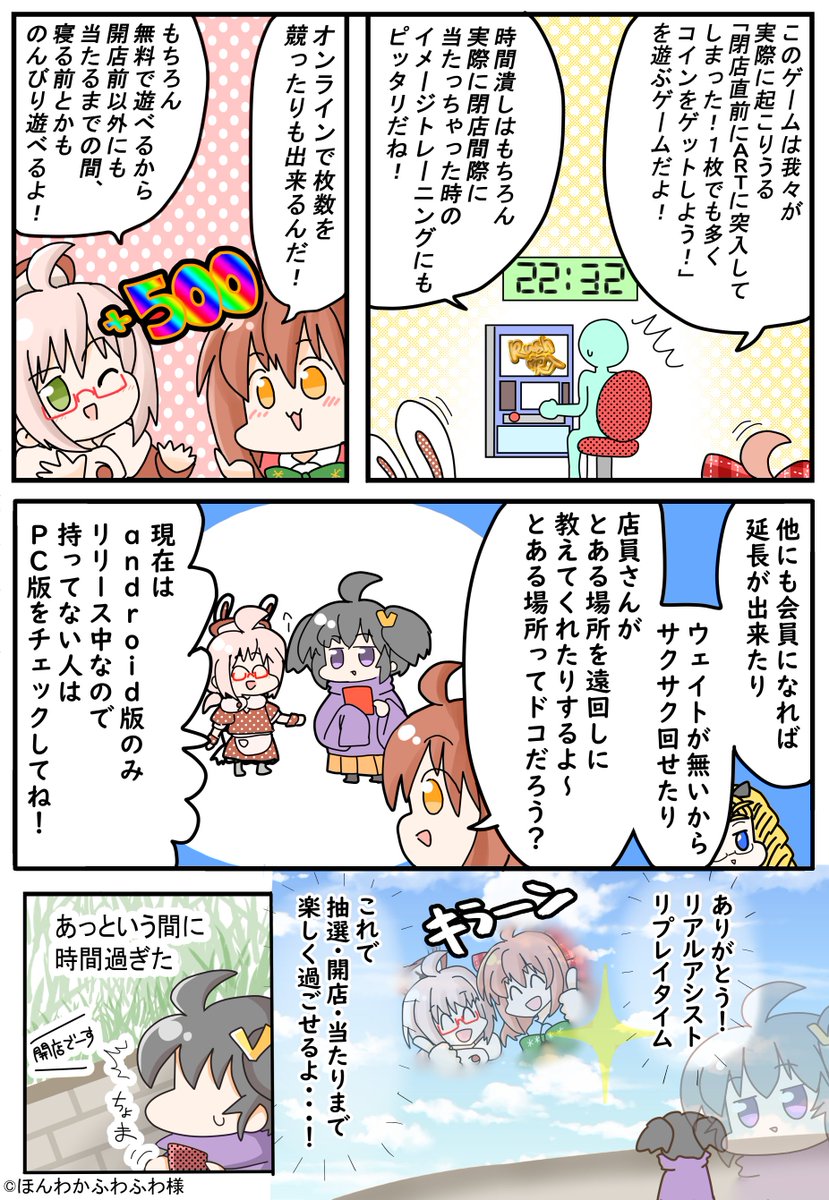 明日は3月3日ゾロ目激熱の日! スロットの抽選を待つ時間が長いそんなスロッターにオススメのサクッと遊べるゲームがこちら! ■スロット風ミニゲーム■ 『リアルタイムART ~閉店までの1分間~』 ほんわかふわふわ 様(@M_hanakura) ■Android対応 play.google.com/store/apps/det… #リアルタイムART