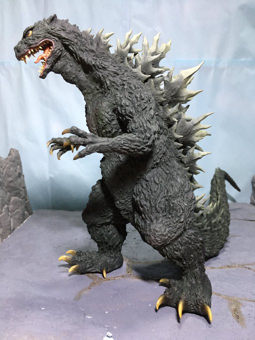 #夜のフィギュア撮影会 お題『生物』 最強生物ゴジラ! ←『ゴジラ2000 ミレニアム ひな形レプリカ ソフビ版(原型:酒井ゆうじ氏)』 #リアルマスターコレクション #ゴジラ #Godzilla #ミレゴジ #ソフビ #酒井ゆうじ 氏 #オモ写