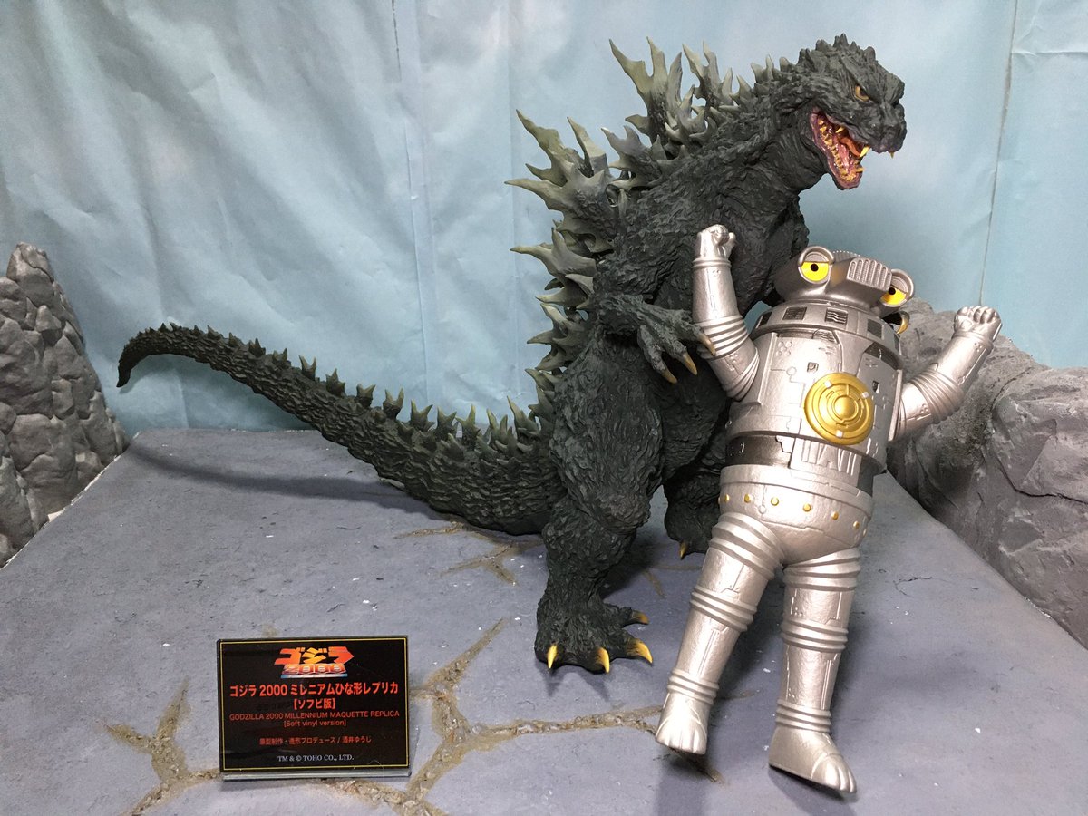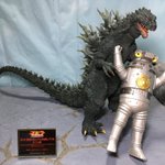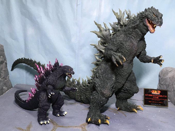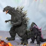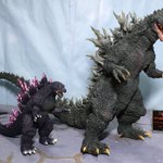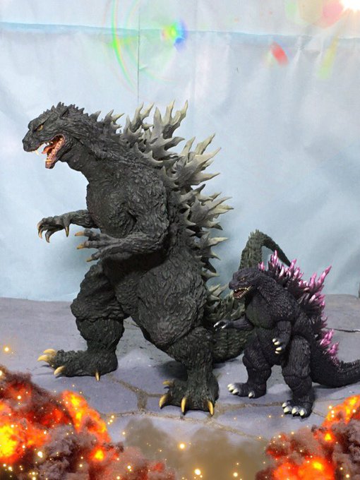 #夜のフィギュア撮影会 お題『チーム』 ミレゴジの親子チーム!😄←『ゴジラ2000 ミレニアム ひな形レプリカ ソフビ版(監修:酒井ゆうじ氏)』 #リアルマスターコレクション #ゴジラ #Godzilla #ミレゴジ #ソフビ #ムービーモンスターシリーズ #ムビモン #オモ写