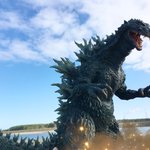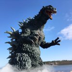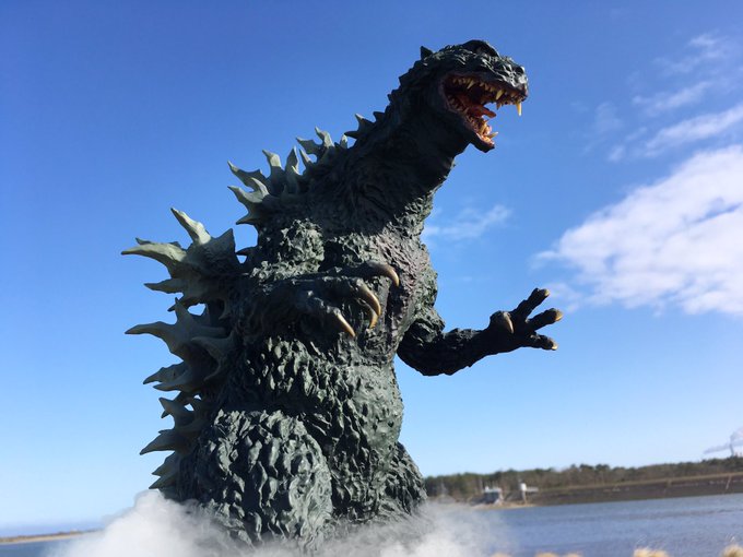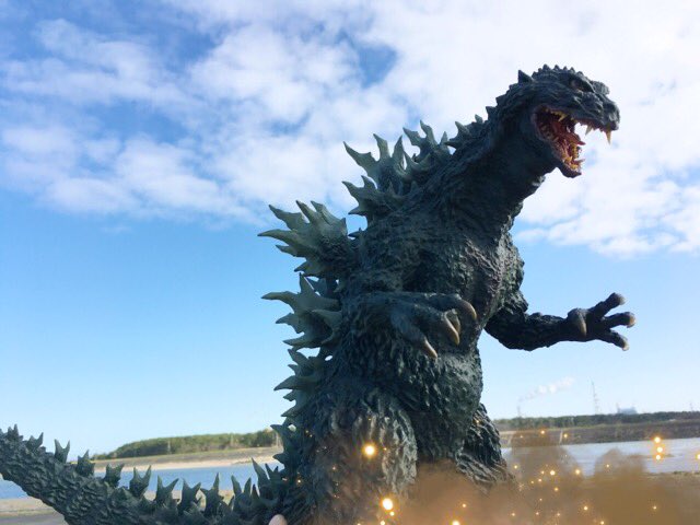 #夜のフィギュア撮影会 お題『外』過去作 野外オモ写!ゴジラが久慈川河口に出現!?東海原発を襲うゴジラ! ←『ゴジラ2000 ミレニアム ひな形レプリカ ソフビ版(原型:酒井ゆうじ氏)』 #リアルマスターコレクション #ゴジラ #Godzilla #ミレゴジ #ソフビ #酒井ゆうじ 氏 #オモ写