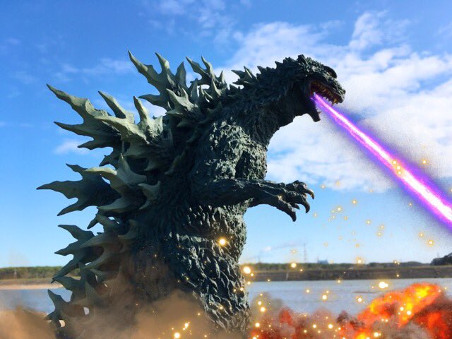 #夜のフィギュア撮影会 お題『フリー』 ミレゴジが久慈川河口に上陸! ←『ゴジラ2000 ミレニアム ひな形レプリカ ソフビ版(原型:酒井ゆうじ氏)』 #リアルマスターコレクション #ゴジラ #Godzilla #ミレゴジ #ソフビ #酒井ゆうじ 氏 #オモ写